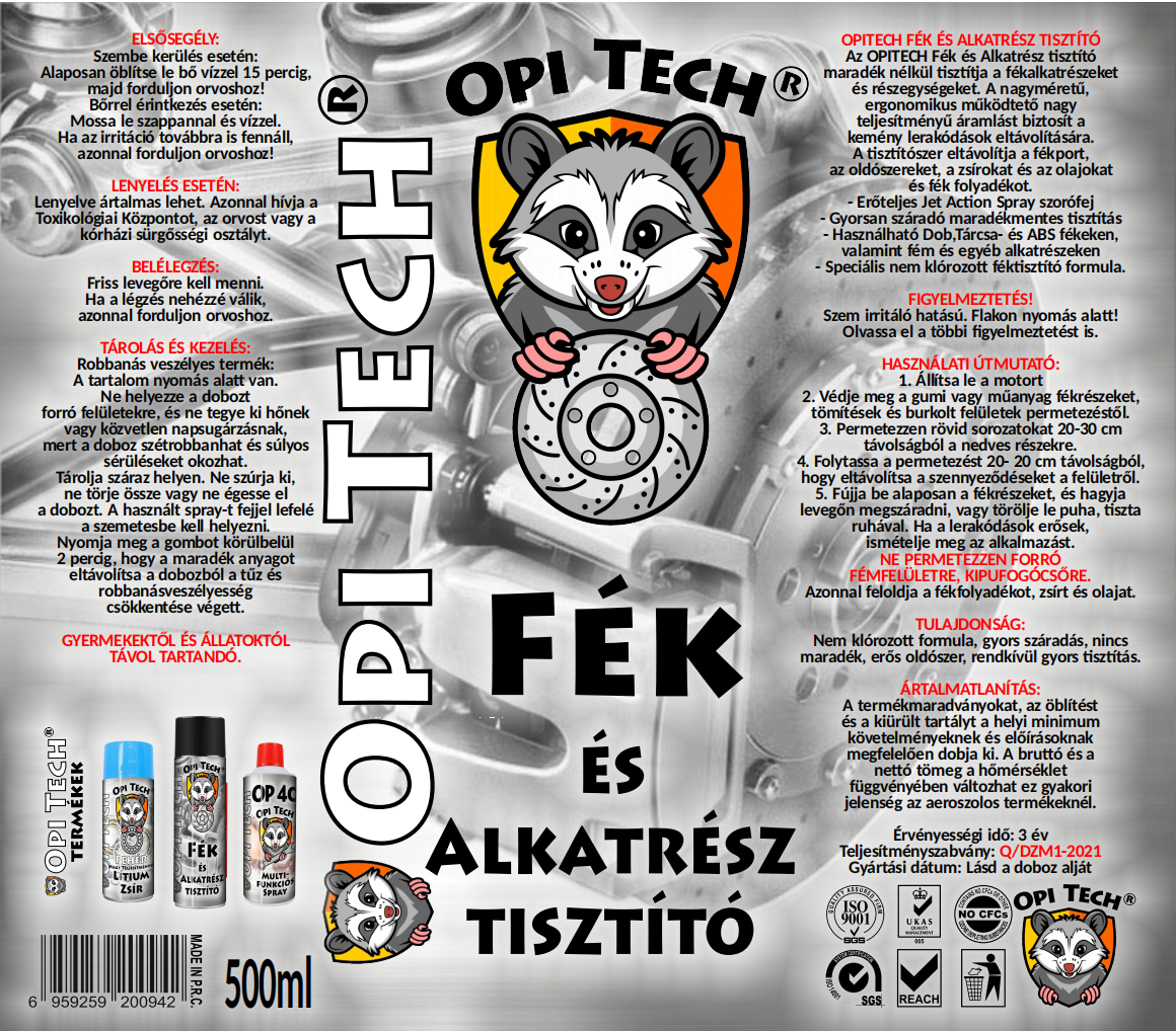 opi tech® op 40 multifunkciós spray 450 mlOPI TECH® Fék- és Alkatrész Tisztító – 500 ml