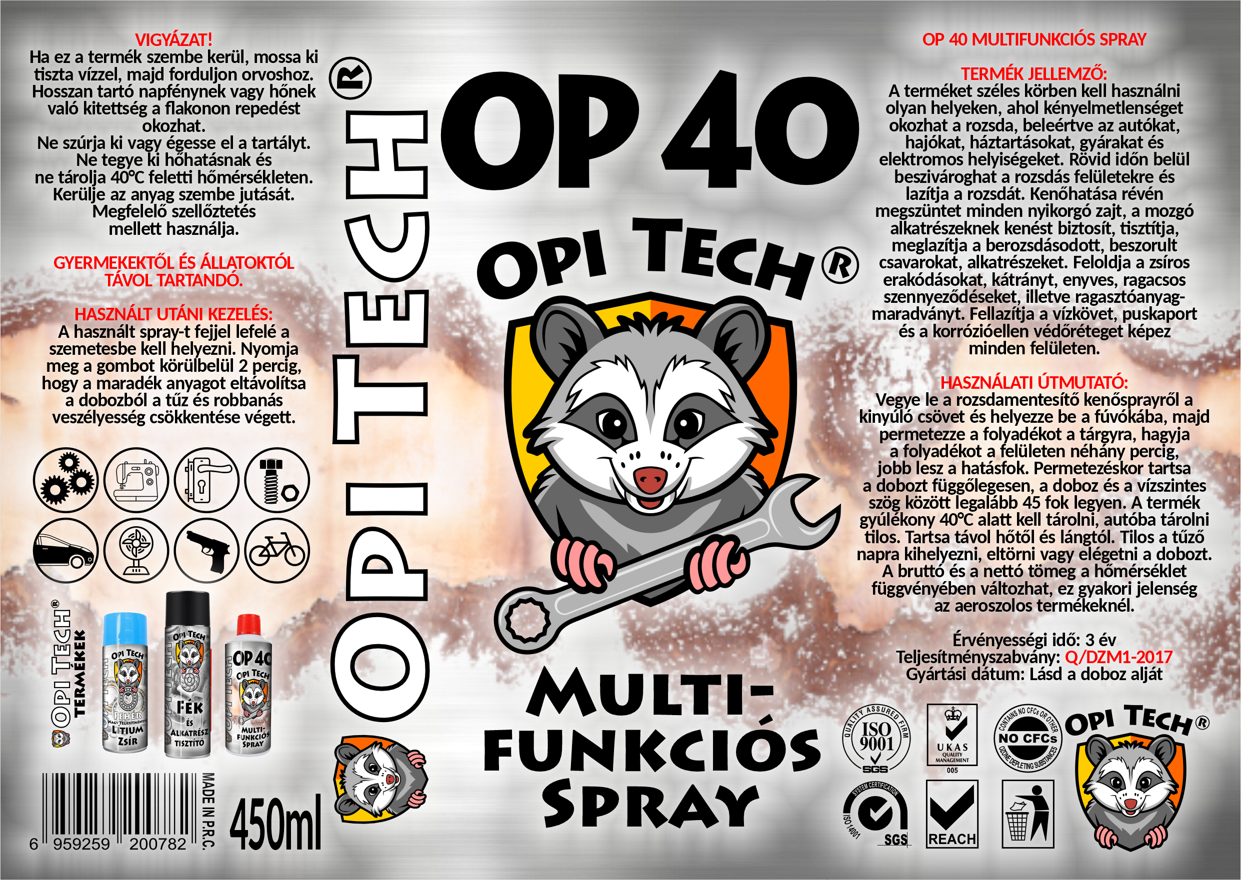 Az OPI TECH® OP 40 Multifunkciós Spray egy sokoldalú karbantartó eszköz, amelyet kifejezetten a gyors és hatékony megoldásokra fejlesztettünk. Ideális választás szervizeknek, műhelyeknek és otthoni felhasználóknak egyaránt.